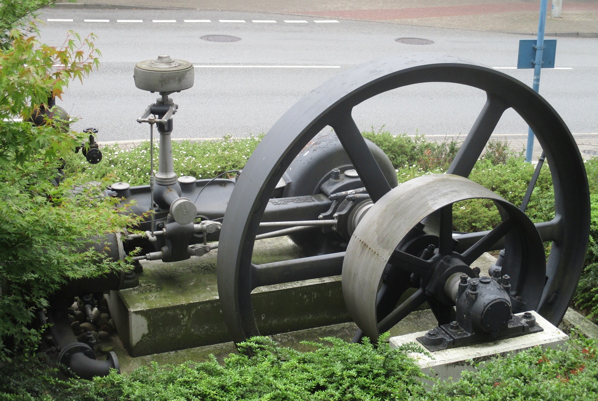 einer sogenannten Liegenden Dampfmaschine, gebaut |