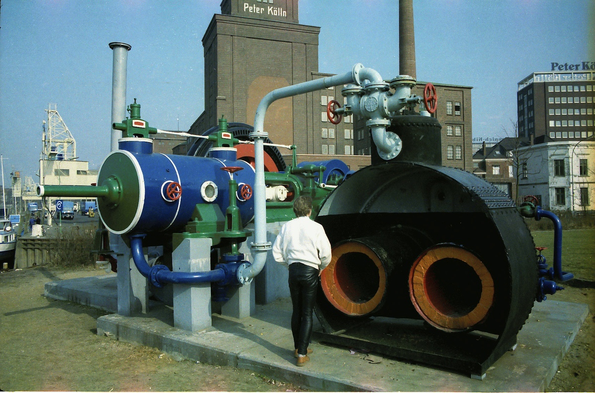 Der im Bild links zu erkennende Dampfkessel stammt ursprünglich von der Hefefabrik Asmussen, Elmshorn. |