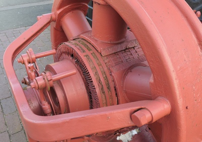 Möller (Brakwede) Baujahr 1909, Nr. 954 mit Kolbenschieber-Steuerung vor der historischen Turbinenhalle der Stadtwerke Bielefeld. Früher in der Brennerei Hagedorn, Rheda |