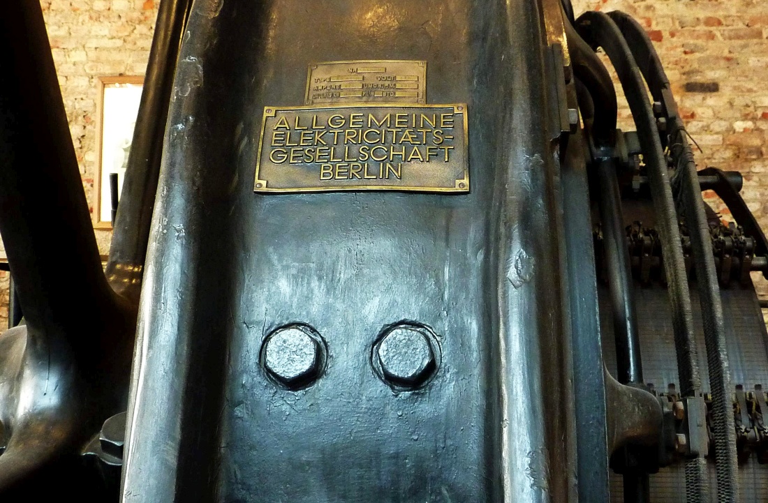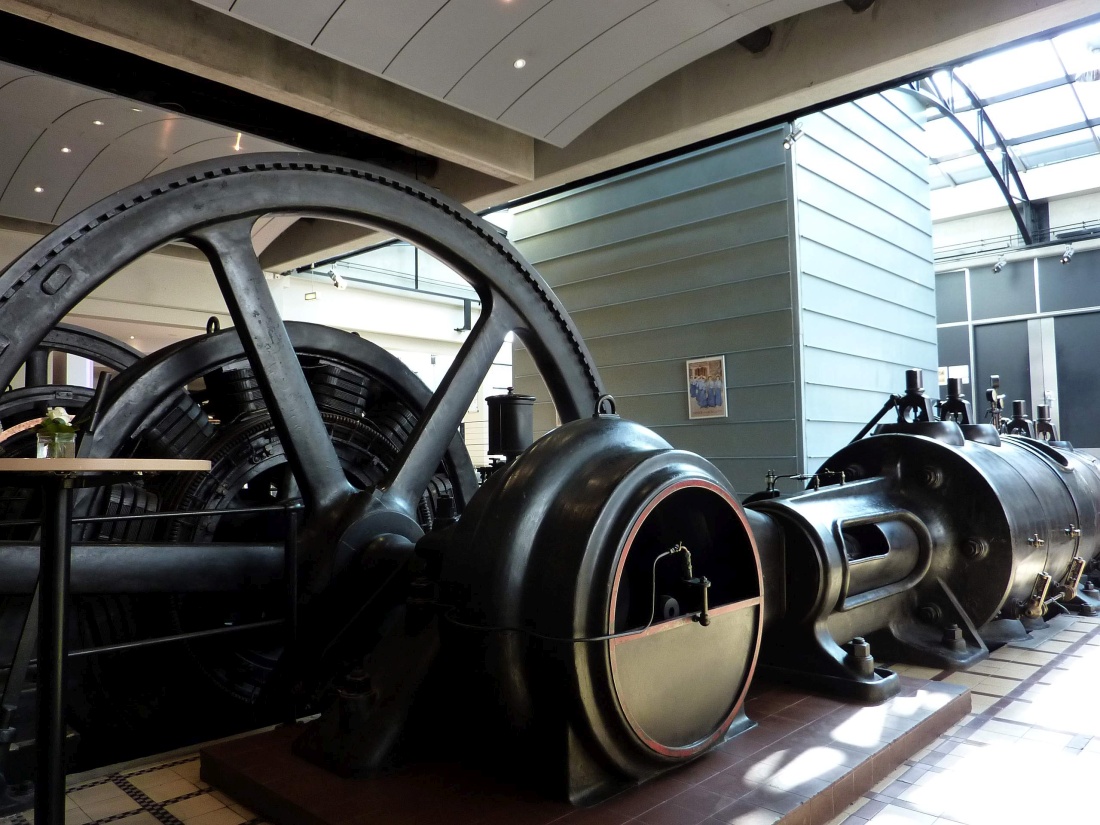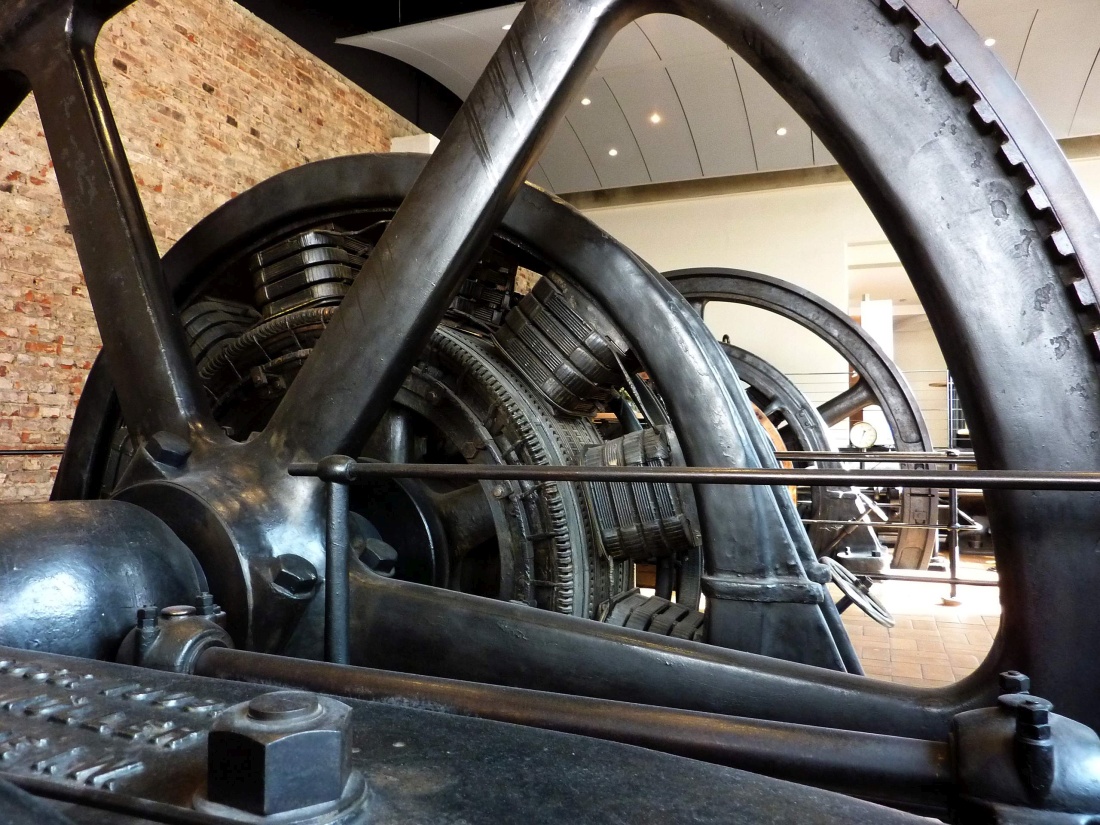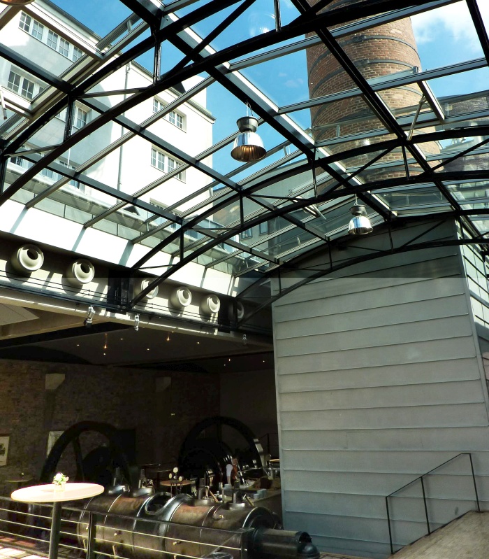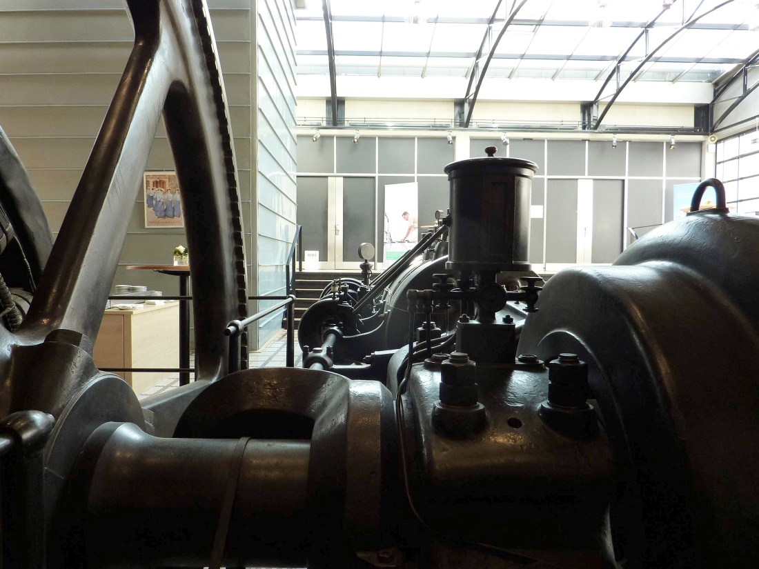 Die Dampfmaschinen stehen noch an ihrem ursprünglichen Standort direkt unter dem Schornstein und tragen die Namen "Leibnitz" und "Duve". |