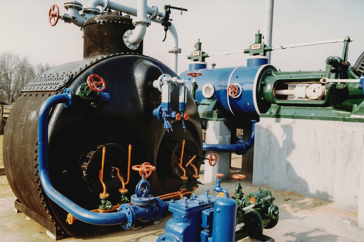 Der im Bild links zu erkennende Dampfkessel stammt ursprünglich von der Hefefabrik Asmussen, Elmshorn. |