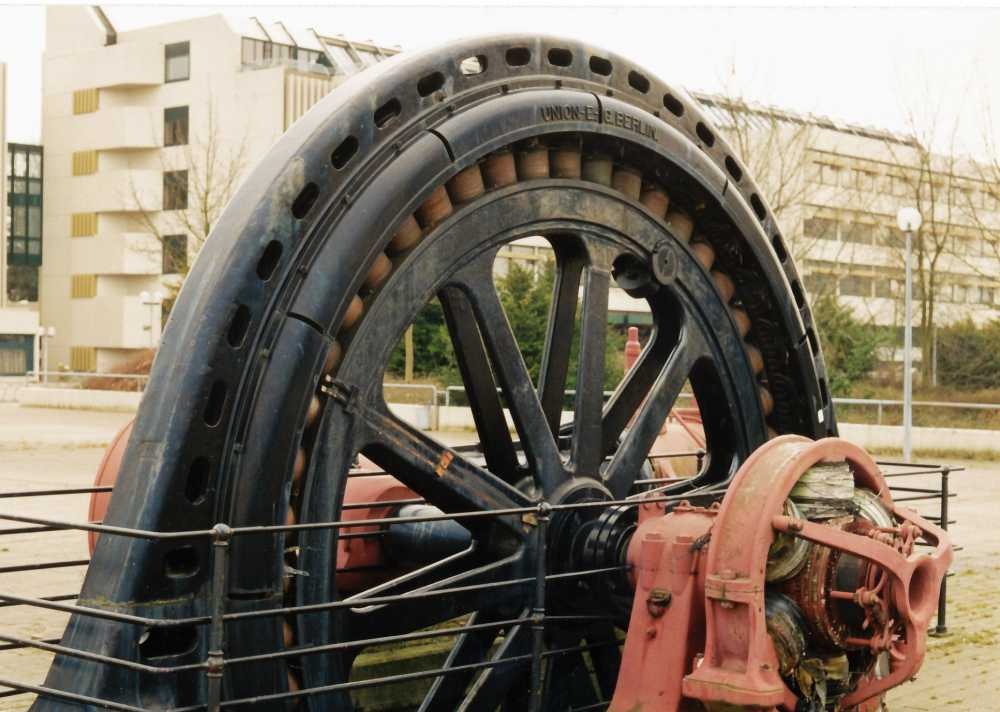 dem Gelände des Wilhelm Normann Berufskollegs in Herford. Drehzahl 125 U/min Die Maschine befand sich früher in einer Möbelfabrik an der Engerstraße, neben der Herforder-Motorenfabrik. Generator von UNION-Elektr.-Gesellschaft. Berlin, Hersteller der Dampfmaschine unbekannt. Bilder aus den 1990er Jahren |