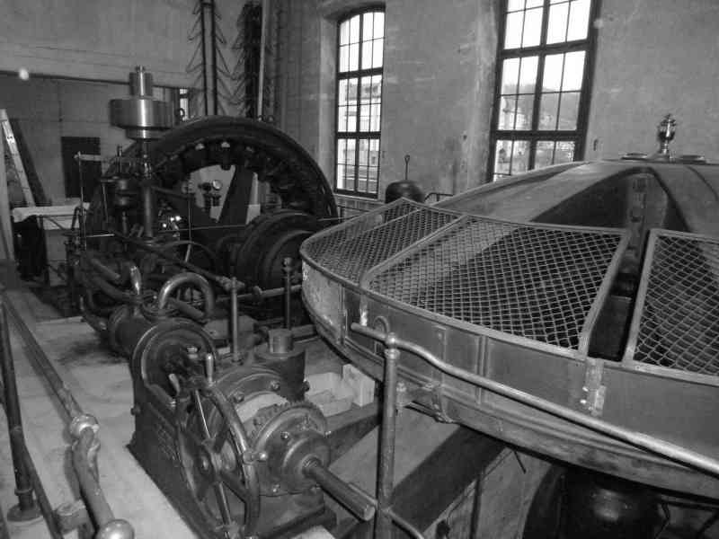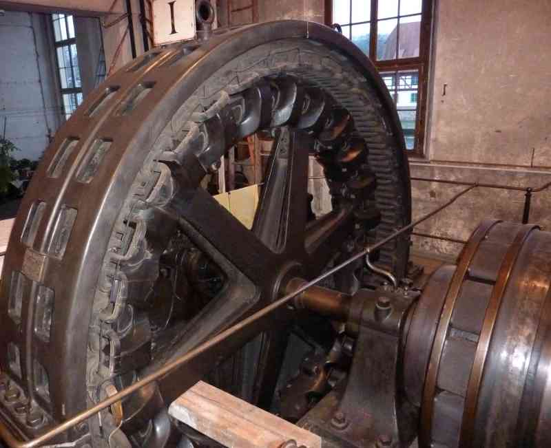 hierher transportiert und eingebaut. Die Generatoren stammen aus den Anfängen der Wasserkrafttechnik und gehören zu den ältesten Exemplaren dieser Art in Deutschland. |