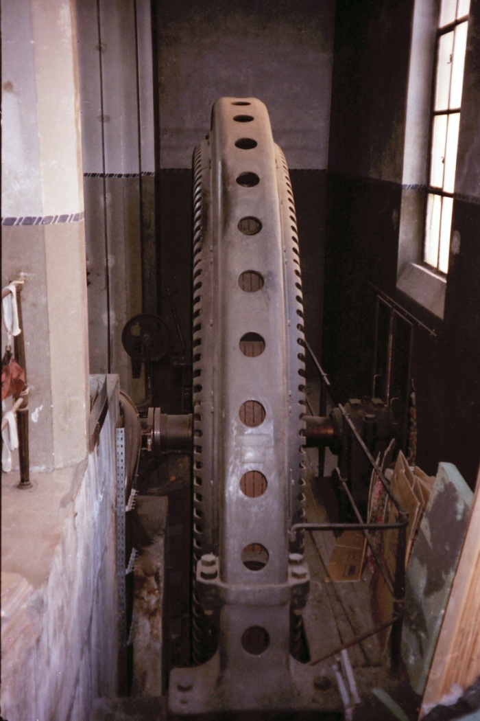 Der Schwungradgenerator am anderen Ende der langen Welle.