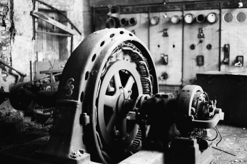 sehen. Links der Voith-Turbinenregler mit der Regelstange, die von oben durch eine Hohlwelle die Schaufeln der vertikalen Kaplan-Turbine verstellt. Der alte Generator mit Regelung ist komplett verschwunden und die Turbine wurde im Untergeschoss mit einem Getriebe und neuen Generator versehen.  |